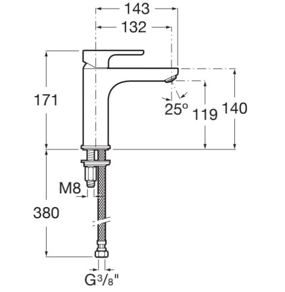 | L 20 стоящ смесител за умивалник без клапа със студен старт в положението на ръкохватката.Със средна височина на чучура - MEZZO вариант. Тип прогресив , което осигурява икономия на вода и енергия . Производител - Roca Испания |