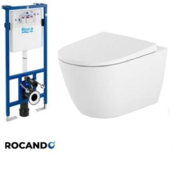 Промоционален комплект включващ компактна стенна тоалетна ONA Rimless, капак с плавно затваряне SUPRALIT®, структура Duplo от испанския производител Roca.