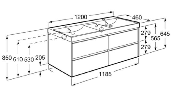 Размери / Умивалник и мебел / Дължина (мм): 1200