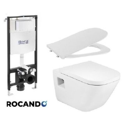 Промоционално предложение на стенна тоалетна Roca THE GAP без ръб с правоъгълна форма и структура за вграждане Roca ACTIVE ONE. Насладете се на удобство, практичност и чистота в своята баня!