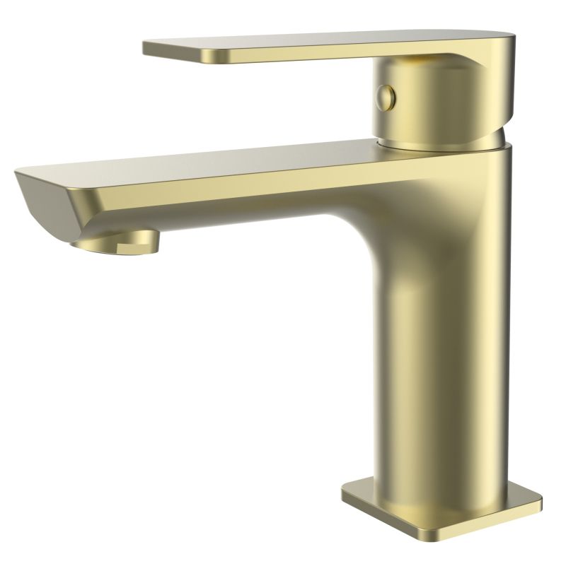 Комплект вградени смесители за баня в матово покритие злато мат в комплект с клик клапан и подов сифон в същия финиш.