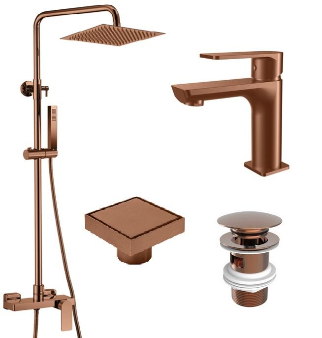 Комплект смесители LOTUS ROSE GOLD с клапан и сифон