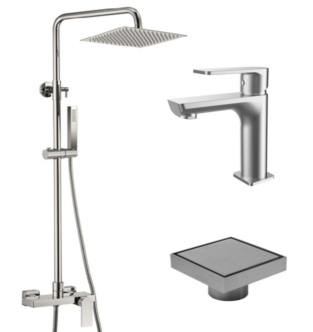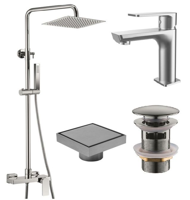 Комплект смесители за баня в матово покритие хром комплект клик клапа с подов сифон