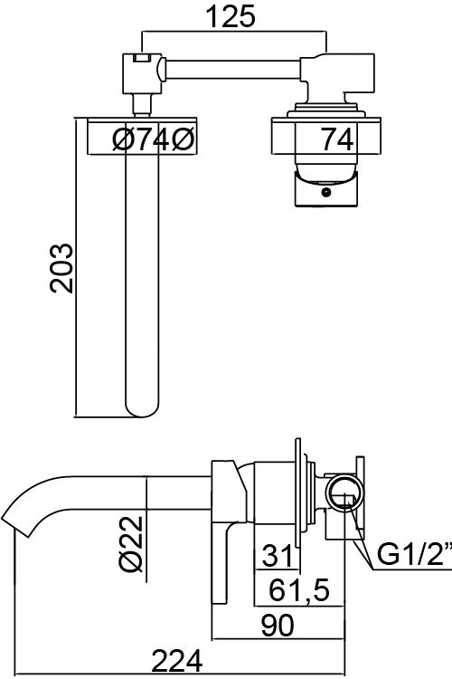 URBAN FLOW едноръковхатков вграден смесител за умивалник, цвят матирано злато