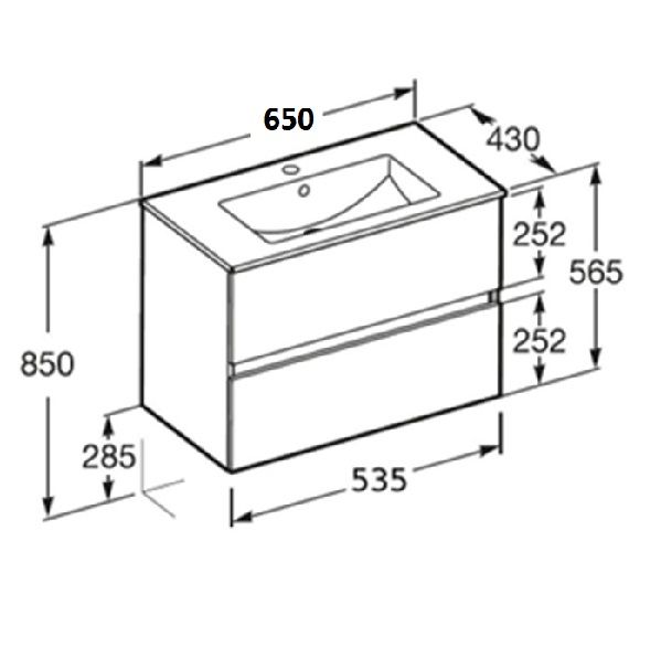 Мебел N-Cube Glossy White(Бял гланц),65см.базов модул с две чекмеджета и умивалник A852504806