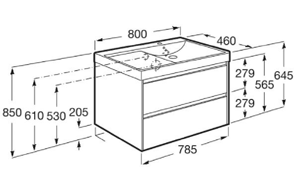 ROCA ONA 80 Мебел Unik с две чекмеджета и умивалник Бял Мат
