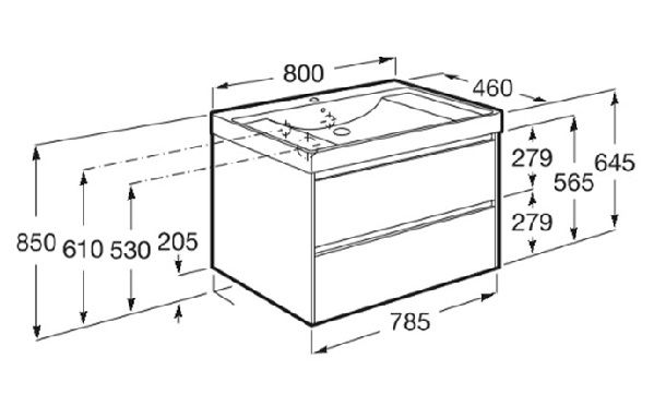 ROCA ONA 80 Мебел Unik с две чекмеджета и умивалник Бял Мат A851691509