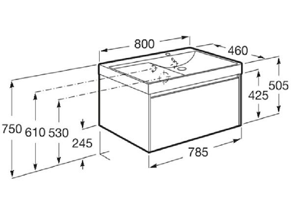 ROCA ONA 80 Мебел Unik с едно чекмеджета и асиметричен умивалник Dark Elm A851719511