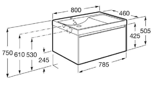 ROCA ONA 80 Мебел Unik с едно чекмеджета и асиметричен умивалник Бял Мат A851720509