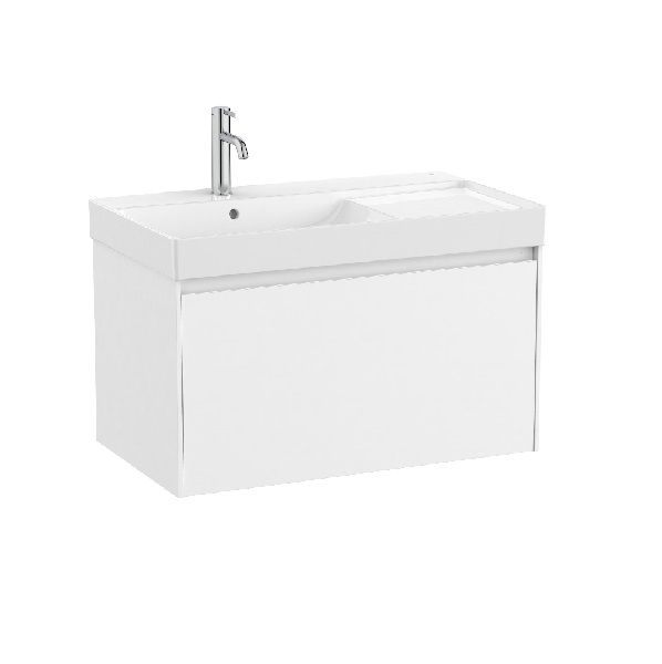 ROCA ONA 80 Мебел Unik с едно чекмеджета и асиметричен умивалник Бял Мат