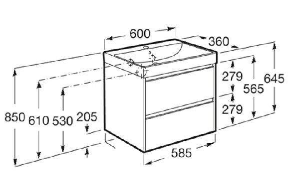 ROCA ONA 60 Мебел Unik с две чекмеджета и умивалник Бял Мат A851684509