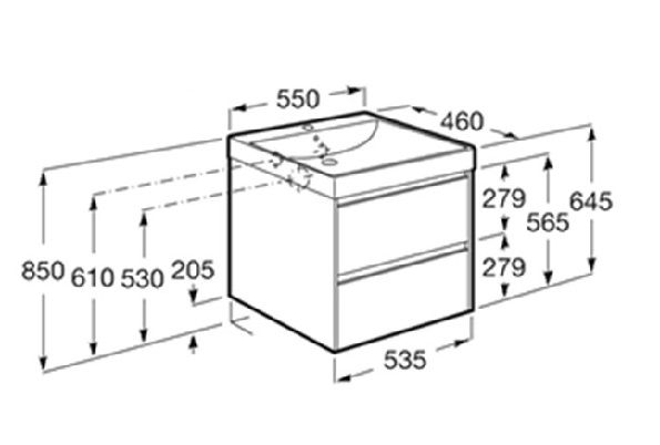 Размери / Умивалник и мебел / Дължина (мм): 550
