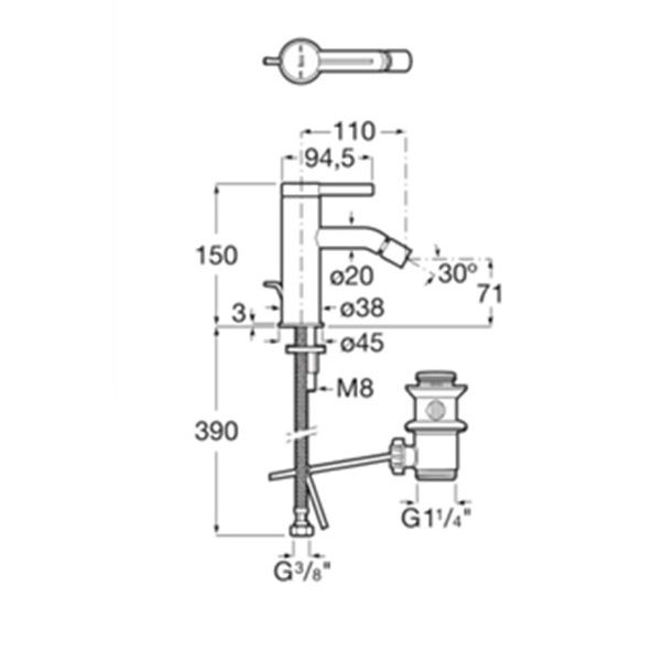 Смесителят за биде, разработен в колекцията има следните характеристики: