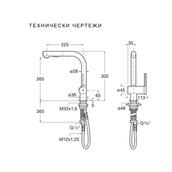 ROCA ONA Смесител за кухня с въртящ изтеглящ се чучур с две функции хром
