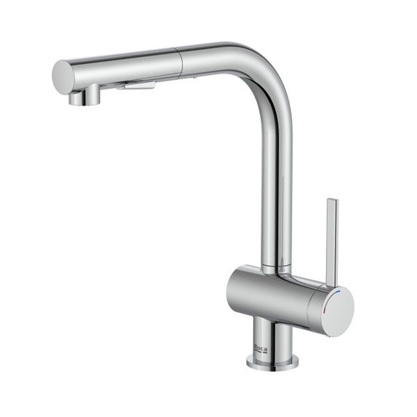 Roca CALA кухненски смесител с извит изтеглящ се чучур хром