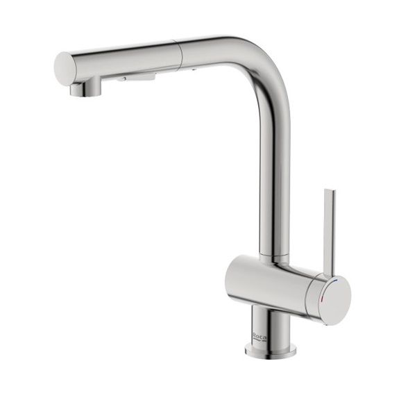 ROCA ONA Смесител за кухня с въртящ изтеглящ се чучур с две функции Stainless Steel Finish