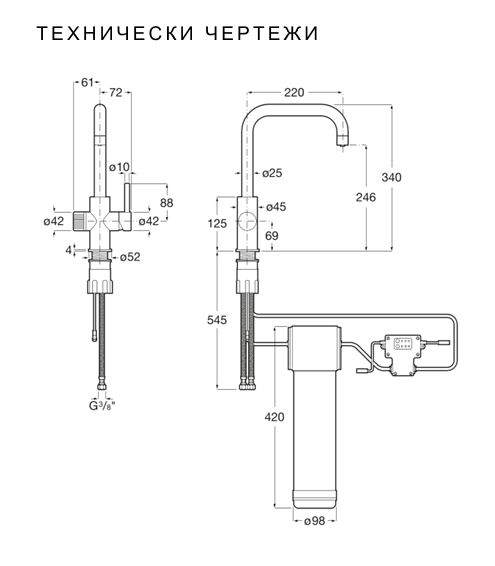 ROCA AQUAFY Смесител за кухня с фитрираща система два изхода хром
