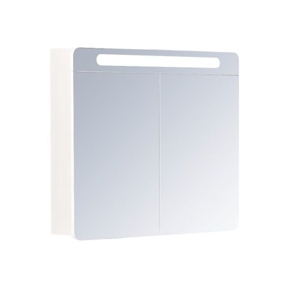 Горен шкаф за баня с огледало и LED осветление от серията Монако на българския производител TRIANO Изработен от PVC бял гланц 80см
