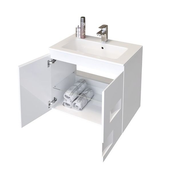 PVC Сънлайт 65см Долен шкаф за баня и две врати с умивалник Fayans Линеа бял гланц