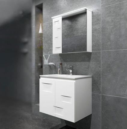 Долен шкаф за баня и две врати с умивалник Fayans Линеа от серията Сънлайт на българския производител TRIANO