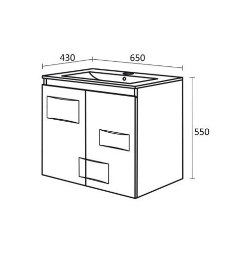 Съвършено водоустойчив шкаф с изчистена линия за вашата баня. С две врати с декоративни елементи и плавно затваряне. Порцеланова мивка Fayans Линеа 650 Две врати Стъклен рафт Плавно затваряне Панти хром-никел Включени крепежни елементи Размери в мм: Ш – 650 / В – 550 / Д – 430