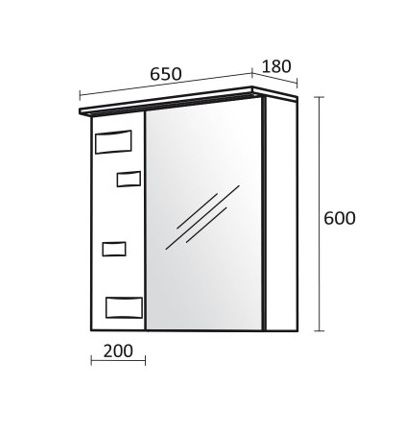 Размери в мм: Ш – 650 / В – 600 / Д – 180