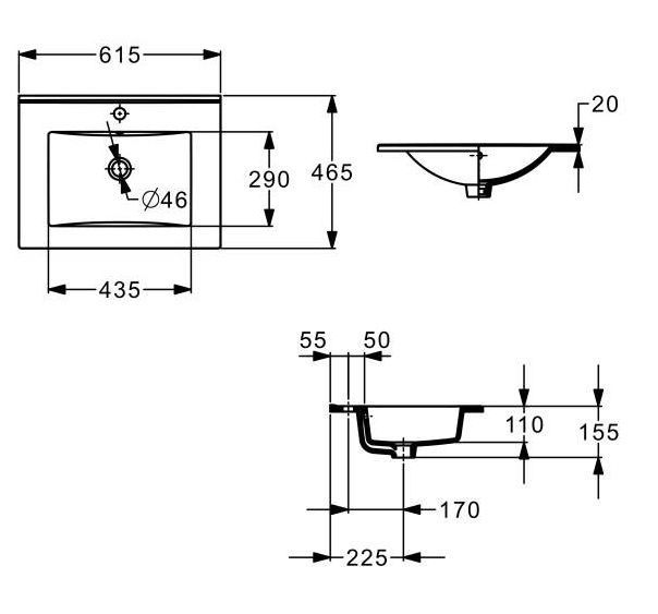 Hebe умивалник за монтаж върху мебел или плот с отвор за смесител