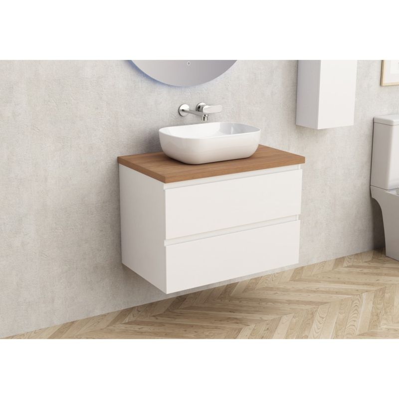 Мебел с плот за баня, цвят бял гланц с плот светъл дъб, размер 73.5/45см