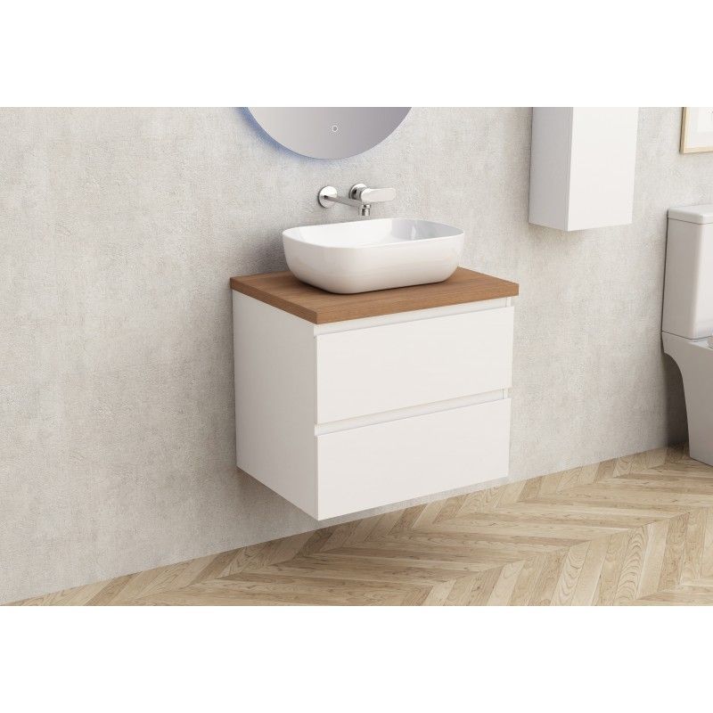 Мебел с плот за баня, цвят бял гланц + дървесен плот, размер 59/45см