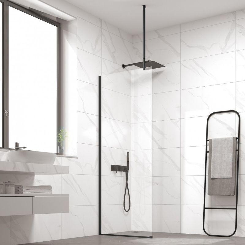 Стационарен душ параван CRISTINA 100×200 см – стъклен walk-in параван за баня с профил черен мат